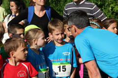 Neudorfer Pfingstlauf 2016 admin, Mai 16, 2016 Dieses Jahr sind 10 Dynamos in Neudorf angetreten. 5 bei den Knirpsen und 5 bei den Schülern. Das Wetter hatte ein Einsehen und so fanden wir optimale Laufbedingungen vor. Nach Besichtigung der Strecke in Verbindung mit unserem Aufwärmprogramm gingen alle Knirpse zum Start. Der Start bei den Knirpsen war, wieder einmal, von einem Sturz geprägt. Alle Dynamos kamen diesmal gut durch und konnten sich auf den Lauf konzentrieren. Leider stürzte Felix dann bei der ersten Kurve. Tapfer konnte er den Lauf aber beenden! Ákos versetzte uns alle wieder in Staunen als er sich in der Zielgeraden mit einem U10 Läufer um den Tagessieg in der Knirpse Klasse matchte. Den Kampf hat er zwar ganz knapp verloren (nur 2 zehntel Sekunden) aber er hat uns wieder gezeigt wo seine Stärken liegen! Gleich dahinter kamen Tamara gefolgt von Daniel ins Ziel. Sie belegten den 1ten und 2ten Platz in der U10 Klasse. Bei den Schülern, welche 2 Runden á 750m zu Laufen hatten, war Moritz der Schnellste Dynamo und belegte Platz 1 in der U12, gefolgt von Bernhard der den 3ten Platz belegte. Julia hat sich den ersten Platz erlaufen, wir gratulieren recht herzlich!! Moritz und Ferdi haben dann auch noch den Hobbylauf über 3.3 km bestritten. Knirpse: Rng Snr Name Vorname Jg Ak AkRng Endzeit 2 12 Harangi Akos 2009 MU8 1 02:46,8 3 16 Binder Tamara 2007 WU10 1 02:54,4 4 15 Janitsch Daniel 2007 MU10 2 02:58,2 10 13 Schnitzer Dominik 2009 MU8 5 03:09,9 24 14 Preisl Felix 2009 MU8 8 03:39,0 Schüler: Rng Snr Name Vorname Jg Ak AkRng Endzeit 6 105 Gamsjäger Moritz 2005 MU12 1 05:48,4 11 101 Braunsdorfer Bernhard 2006 MU12 3 06:23,1 14 102 Harangi Mate 2006 MU12 5 06:36,2 18 103 Binder Julia 2006 WU12 1 06:59,6 22 104 Neumayr Ferdinand 2006 MU12 7 07:33,9 Alle Ergebnisse findet ihr hier und hier. Alle Fotos findet ihr hier. News