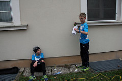 Mistelbacher Kasernenlauf 2017 Christian Huf, März 19, 2017 Erstmals waren wir beim Mistelbacher Kasernenlauf dabei. Wie schon der Name der Laufveranstaltung andeutet fand das Event zum Teil auf einem Kasernengelände statt. Diese Location hatte etwas besonderes. So liefen die Kids neben Bundesheerfahrzeugen und Wachesoldaten um die Wette. Gleich nach dem Start mußten die Läufer den Schranken passieren und weiter am Truppenübungsplatz Ihre Runden drehen. Leider nahm nur ein Miniteam daran teil. Einerseits vermutlich durch die doch sehr frühe Startzeit (9:30 Uhr) und andererseits aufgrund des schlecht angesagten Wetters. Doch hatten wir Glück, just diese paar wenigen Stunden ließ der Regen nach bzw. hörte ganz auf. Somit konnte außerdem Hannes seine Zeitmessanlage testen. Hauptzweck war ein Testlauf in Hinblick auf unseren kommenden Dorfarenalauf im Juni. Sie funktionierte seinen Erwartungen entsprechend einwandfrei. Unser Miniteam bestand aus Moritz, Bernhard und Tatjana. Alle drei hatten den 1200m Lauf der Schüler zu absolvieren. Es war von Anfang an klar das es keine Siegerehrung geben wird. Das Motto dieses Laufes war, „Jeder ist ein Sieger“. Der Veranstalter untermauerte dies zudem mit der Tatsache das jeder der Teilnehmer einen Pokal am Ende bekam. Eine sehr nette und motivierende Geste für die Kinder. Trotzdem ließ Moritz der gesamten Konkurrenz keine Chance und konnte als Erster des Feldes das Ziel erreichen. Kompliment, denn dieses mal waren Gegner hinter Ihm, diese er bisher nicht schlagen konnte. Bernhard hatte leider etwas mit der kalten Luft zu kämpfen. Trotzdem konnte er den guten 7. Platz erreichen. Betrachtet man seine Altersklasse (MU12), so wurde es jedoch der sehr gute 3. Platz. Tatjana erlief sich den 3. Platz der Mädchen. Auch hier wollen wir aber erwähnen, das Sie allerdings in Ihrer Klassenwertung (WU12) den 1. Platz erringen konnte. Moritz und Bernhard hatten nach dem soeben absolvierten Lauf noch immer nicht genug und nahmen am anschließenden 5,4 km Lauf teil. Auch hier lief Moritz ein fantastisches Rennen und wurde bei den Herren insgesamt 8. Bernhard war an diesem Tag ebenso unverwüstlich und konnte nach hartem Kampf den 18. Platz erreichen. Ergebnis Schülerlauf 1200m: Rang Familienname Vorname Jg G Verein Klasse Kl.-Rang Zeit Distanz Geschw. min/km 1 Gamsjäger Moritz 2005 m Dynamo Seyring WU14 1 0:04:55,677 1200 m 14,61 km/h 04:06 min/km 3 Huf Tatjana 2006 w Dynamo Seyring WU12 1 0:05:36,370 1200 m 12,84 km/h 04:40 min/km 7 Braunsdorfer Bernhard 2006 m Dynamo Seyring WU12 3 0:05:47,836 1200 m 12,42 km/h 04:50 min/km Ergebnis 5,4 km Lauf: Rng Snr Name, Vorname Verein/Ort Jg Ak AkRng Zeit Distanz Geschwindigkeit min/km 8 93 Gamsjäger, Moritz Dynamo Seyring 2005 M 8 0:24:03,405 5400 m 12,47 km/h 04:49 min/km 18 94 Braunsdorfer, Bernhard Dynamo Seyring 2006 M 18 0:32:15,252 5400 m 9,30 km/h 06:27 min/km Ergebnisse: Fotos: Verein