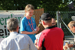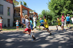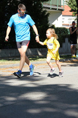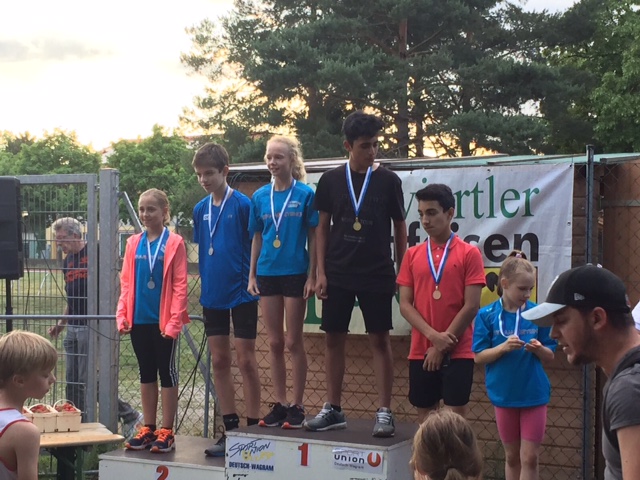Deutsch-Wagramer Lauftag 2017 Christian Huf, Juni 11, 2017 Aufgrund der Nähe ja fast schon ein Heimrennen, bescherten uns 18 Kids einen äußerst unterhaltsamen und erfolgreichen Nachmittag beim Deutsch-Wagramer Lauftag. Die Organisation der Kinderläufe gefiel uns sehr gut, da der Veranstalter die Läufe jeweils in U6, U8, U10 bei den Knirpsen und sogar die Starts bei den Schülern in U12 und U14/16 trennte. Zusätzlich gab es beim Schülerlauf eine exakt ausgemessene 1250m Laufstrecke inklusive Chipzeitmessung. Auch loben wir die vom Moderator immer wiederkehrenden und erheiternden Anfeuerungsrufe, „Hoi, hoi, hoi“ ! Eines noch vorweg! Fotomäßig wollen wir den heutigen Bericht einmal unseren Kids widmen, die nicht stets Podestplätze erringen, dafür umso mehr immerwährend Ihr Bestes geben, genauso unermüdlich kämpfen und niemals aufgeben. Fast schon traditionell war Emilia unsere erste Teilnehmerin. Nicht einmal mehr die gleichaltrigen Buben in der U6 konnten mit Ihr mithalten. So avanciert Sie zur Seriensiegerin bei den Mädchen und Sie durfte abermals vom obersten Podestplatz strahlen. In der U8 bei den Burschen nahm David teil. Vom Start weg, mit enorm hohem Tempo, hielt er mit den ersten 3 Konkurrenten mit. Erst ab der Wende mußte er ein wenig nachlassen, was Ihm aber trotzdem den tollen 4. Platz bei vielen Teilnehmern einbrachte. Zum Stockerlplatz fehlten lediglich einmal 1.5s, was zeigt, das der Abstand immer geringer wird. Im U10 Lauf stellten wir die meisten unserer mitlaufenden Knirpse. Bei den Burschen lief es für Akos dieses Mal nicht ganz so wie gewohnt. Einerseits war natürlich die Konkurrenz sehr stark, andererseits war es vielleicht nicht sein bester Tag. Im größten Teilnehmerfeld des Tages wurde er dennoch ausgezeichneter Fünfter. Auch dürfen wir nicht vergessen, das er nach wie als jüngere Jahrgang teilnimmt. Eine weitere tolle Leistung lieferte heute Felix ab. Er wurde mit nicht einmal 1s Rückstand auf Akos 6. Dann hatten wir da noch Dominik! Mit dem 9. Platz lief auch er in das vordere Drittel des Feldes. Wie schon letzte Woche hatte er heute wieder vor, den Hobbylauf zu bewältigen, worüber wir etwas später berichten. Bei den Mädchen sorgte Victoria für den nächsten 1. Platz unserer Kids. Bis zur Wende noch etwas zurückhaltend, konnte Sie speziell auf den letzten 100m, mit einem beachtlichen Zielsprint, noch einige Mädls überholen. Wir denken, das diese Leistung auch auf das zusätzlich absolvierte Intervalltraining zurückzuführen ist :-). Katharina und Kristyna komplettierten das gute mannschaftliche Ergebnis mit den Plätzen 5 und 7. Auf das Podest fehlten lediglich zwei bzw. vier Sekunden. Dieser Rückstand ist auf jeden Fall bei einem der nächsten Läufe aufzuholen. Bitte einfach weiter so einfrig trainieren, wie Ihr das Woche für Woche auch zeigt. Im Gegensatz zu den Knirpsen (400m) hatten die Schüler eine 1250m Runde zu bewältigen. Bei den männlichen Läufern machte Valentin von Anfang alles klar und zeigte keine Schwächen. In einer tollen Zeit gewann er die U12 und konnte es somit seiner Schwester gleichtun. Auch heute durften wir uns wieder über Mate freuen. Innerhalb von nur 1 Woche erlief er sich den zweiten Stockerlplatz. Wir gratulieren wieder herzlichst zum 3. Platz. Bei den Mädchen gab es einen !!! 6-fach !!! Triumph in der U12 Wertung. Tatjana, Julia und Tamara standen abermals in der selben Reihenfolge am Podest, wie schon bei den letzten Läufen. Unermüdlich erkämpfte sich Chiara den 4. Platz. Erwähnenswert sei hier, das der Abstand zu den Podestplätzen geringer wurde und dies Hoffnung für die nächsten Läufe gibt. Melissa und Fabiana komplettierten den großartigen Erfolg der Mädchen mit den Plätzen 5 und 6. Auch wenn es abermals nicht ganz reichte, wir finden es beachtlich und beeindruckend, das Ihr nicht aufgebt und Ihr stets euer bestes gebt. Erstmals gab es somit kein rein „dynamisches“ Podest in der U12 gesamt, was aber die erbrachte Leistung absolut nicht schmälern soll. In diesem Bericht dürfen auch nicht die Leistungen von Markus und Pascal unerwähnt bleiben. Die Konkurrenz ist dieses Jahr sehr stark, das wußten wir, dennoch nehmen Sie von Lauf zu Lauf teil und geben Ihr Bestes. Sie belegten die Plätze 4 und 8. Auch für Euch gilt: „Fleißig weiter trainieren, dann besteht natürlich wieder die Möglichkeit auf das Podest zu kommen“. An dieser Stelle wünschen wir Bernhard eine baldige Genesung. Er konnte aufgrund einer vor wenigen Tagen zugezogenen Gehirnerschütterung leider nicht teilnehmen. Alles Gute Bernhard! Normalerweise ist hier Schluß für unsere Kids. Am heutigen Tag gibt es allerdings sehr wohl noch über ein paar weitere außergewöhnliche Leistungen zu berichten. Auf diese hier nicht einzugehen ein „Fehler“ wäre. Für den Hobbylauf meldeten sich gleich 6 Dynamos an. Dominik kam im 2,5 km Lauf abermals vor seinem Papa Andreas ins Ziel :-). Ein beachtlicher 6. Platz in der U16 Wertung. Beeindruckend war die U16 Wertung der Mädchen. 5 unter den ersten 6 !!! Tatjana, Chiara, Tamara, Julia und Fabiana belegten die Plätze 1, 2, 3, 4 und 6. In der Gesamtwertung der „Damen“ bedeuteten dies die hervorragenden Plätze 1, 4, 5, 8 und 10, womit der Tagessieg der „Damen“ an Tatjana ging. Sie durfte sich über einen wirklich riesigen Pokal freuen. Wir bildeten auch 2 Teams für die Mannschaftswertung. Gegen die Männerdominanz hatten wir selbstvertändlich keine Chance. Hätte es aber getrennte Damen- und Mixed-Teamwertungen gegeben, wäre der erste Platz jeweils an Tatjana, Chiara und Fabiana als auch an Tamara, Julia und Christian gegangen. Hut ab! Schlußendlich konnte sich der Veranstalter auch noch glücklich schätzen, unsere Kids für die Labung der Läufer im Hauptlauf engagieren zu können. Sie übernahmen die komplette Trinkausgabe als auch das Wegräumen der leeren Becher von der Laufbahn. Und sie hatten ihren Riesenspaß. Vorbildlich! Davon profitieren kon
