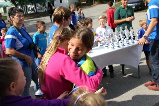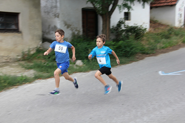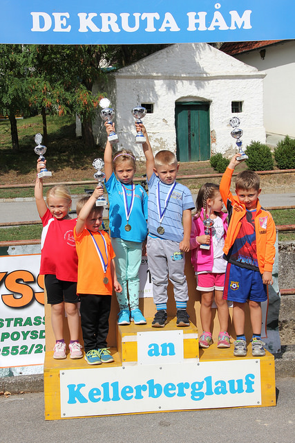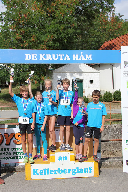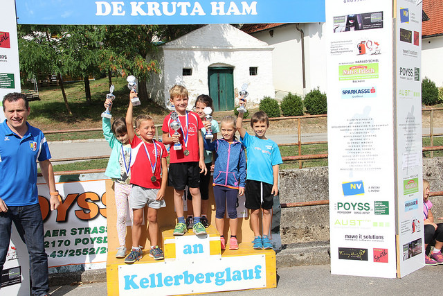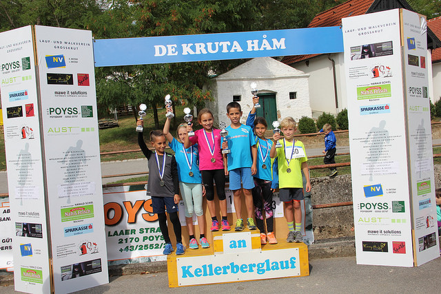 Großkruter Kellerberglauf 2017 Christian Huf, September 5, 2017 Knapp vor Schulbeginn trafen sich 18 Dynamos in Großkrut um vor dem Beginn des „Ernst des Lebens“ nochmals so richtig Kraft zu tanken. Einige von Ihnen waren nach 2 Monaten Ferien wieder dabei, andere wiederum nutzten auch zwischendruch die Laufangebote des WLC. Man durfte daher auf die einzelnen Leistungen gespannt sein. Wie stets gab es einen Knirpse- und einen Schülerlauf. Zuerst ging es über 500m, danach über eine recht lange 1600m Strecke. Wie immer wurde perfekt aufgewärmt und sehr bald konnte es losgehen. Anmerken wollen wir, das der Start in Großkrut leider so angelegt ist, das unmittelbar danach eine Verengung kommt, in dieser es zwangsläufig zu Stürzen bzw. „fast Stürzen“ kommen mußte. Wir finden es sehr schade das der Veranstalter erstens den Knirpselauf nicht in Mädls und Burschen trennte bzw. zweitens den Start nicht einfach 20 m nach vorne verlegte. Der Zieleinlauf hätte, wie ursprünglich geplant, bleiben können. Anführen wollen wir jedoch auch das sowohl die Knirpse als auch die Schüler gratis teilnehmen durften, was wiederum eine sehr schöne Geste des Veranstalters war. So kam es allerdings wie es kommen mußte. In einem turbulenten Start gab es ein reges Durcheinander. Trotzdem tat dies Akos keinen Abbruch gleich das Kommando zu übernehmen. Es wurde ein souveränder Start/Ziel Sieg in der U10. Akos tat die Ferienpause scheinbar sehr gut, denn er konnte wieder an seine früheren Erfolge anschließen. Einen weiteren Läufer hatten wir noch in diesem Bewerb. Es war Dominik! In einem großen Feld kam er als toller 5. ins Ziel, nicht allzuweit hinter den Podestplätzen. Eine Altersklasse darunter holte sich David mit sehr großem Engagement den hervorragenden 3. Platz. Beide kämpfen somit nach wie vor um die Podestplätze in der Gesamtwertung mit. Bei den Mädchen konnten Celine und Katharina Ihre sehr gute Form behaupten. Wie schon in Mistelbach belegten sie die Plätze 2 und 3 in der U10. Bei Celine merkte man, das Sie Lunte gerochen hat. Viel fehlt auf das tschechische Mädchen nicht mehr. Katharina machte es sehr spannend. Mit letzten Kräften und sehr großem Einsatz konnte sie den Podestplatz ganz knapp vor einer lokalen Konkurrentin absichern. Unsere Jüngste erlief sich abermals souverän den Sieg in der U6 Wertung. Wie Emilia uns in einem Kurzinterview später wissen lies, meinte sie, das die gute Leistung aufgrund des enormen Zielsprints zu erklären sei, in dem sie noch einige Gegnerinnen (wenn auch aus der älteren Klasse) überholen konnte. Leider hatten wir auch einen Pechvogel bei diesem Lauf vertreten. Vicky hatte sich bereits beim Aufwärmen etwas verletzt. Sie stand bereits am Start mit einem schmerzverzehrten Gesicht. Trotzdem wollte sie es unbedingt versuchen und biß die Zähne zusammen. Leider ging es dann aber einer gewissen Distanz doch nicht mehr. Sehr geknickt kam sie etwas später in den Zielbereich zurück. Wir zollen Dir höchsten Respekt, da Du trotz Deiner Schmerzen alles probiert hast. Kopf hoch, Vicky! Nach einer kurzen Pause ging der Schülerlauf über die Bühne. Moritz war wieder unser Schnellster, wie schon so oft in vielen Läufen davor. Leider reichte es dieses Mal „nur“ zum 4. Platz in der U14. Wir denken das dies mit der 3 stündigen Autofahrt knapp davor zu tun hat. Etwas später zeigte er im Hauptlauf über 10 km, dass er sehr wohl noch der „alte“ war. In einem super Lauf belegte er den 2. Platz in der U20 Wertung. Bei den Buben in der U12 Wertung konnten wir einen 5-fach Sieg bejubeln. Valentin machte wieder das Rennen und dies trotz geringeren Trainingsaufwand in den Ferien. Dieses Mal holte sich Andreas den 2. Platz. Bedenken wir das er der jüngere Jahrgang ist und wenn er so weiter macht, nächstes Jahr vorne mitmischen wird. Dritter wurde Bernhard. Er hatte mit starken Seitenstechen zu kämpfen und mußte sogar zweimal stehen bleiben. Das er da noch auf das Podest lief, ist fast wie ein kleines Wunder zu bezeichnen. Äußerst knapp musste sich Mate geschlagen geben. Leider wie so oft ergab es den undankbaren 4. Platz. Wir wissen das die interne Konkurrenz sehr stark ist. Außerdem hatte er bereits ein intensives Fussballspiel in seinen Knochen, wonach seine Leistung noch mehr hervorzuheben ist. Unser Fünfter im Bunde war Felix. Nach langer Abwesenheit, … er hatte eine Beinverletzung zu beklagen, diese Ihm einen Gips bis zum Oberschenkel bescherte, … lief er fast wie in alten Zeiten und konnte den 5. Platz erzielen. Mach weiter so und du wirst wieder zur früheren Form finden! Unsere Mädchen in der U12 sorgten zum bereits 8. Mal (also in jedem Rennen des WLC) für einen Triple Sieg. Tatjana konnte heuer bereits zum 7. Mal die U12 Wertung gewinnen. Mit Julia und Tamara folgten die beiden Schwestern auf den Plätzen 2 und 3. Tamara sieht sich anfangs das Feld eher von hinten an, ehe sie in der zweiten Hälfte des Rennens eine Postion nach der anderen aufholt. Julia lief Ihren 2. Platz souverän heraus und hatte dieses Mail keine Positionskämpfe mir Ihrer Schwester zu bestreiten. Eine tolle Leistung der Mädchen, die obendrein abermals ein rein dynamisches U12 Stockerl perfekt machten. Als noch jüngere Jahrgänge wollen wir die Leistung von Anja und Melissa hervorheben. Aufopfernd überwindeten sich beide die gesamte 1600m Strecke und kamen schließlich als 7. und 8. ins Ziel. Dieses Mal Anja ganz knapp vor Melissa. Wir wollen Euch nach wie vor motivieren, mit dem Ziel fleißig weiter zu trainieren, um für das nächste Jahr als Jahrgangsältere gewappnet zu sein und um den einen oder anderen tollen Platz erzielen zu können. Am heutigen Tage brauchten sich ausnahmsweise auch die Oldies nicht verstecken. Den Hobbylauf der Männer gewann erstmals Christoph. Wir gratulieren! Weitere Topergebnisse brachten Andi und Christoph mit dem 4. und 5. Platz. Und wer weiß, hätte Andi den Moritz im Hauptlauf nicht zu sehr aktiv unterstü