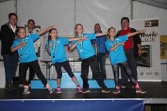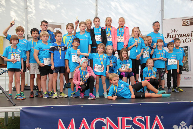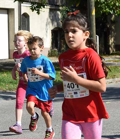 Gerasdorfer Stadtlauf 2017 Christian Huf, Oktober 1, 2017 Das zweite Heimrennen nach dem Seyringer Dorfarenalauf fand in Gerasdorf statt. Dieses Jahr zählte dieser Lauf nicht nur zum WLC sondern auch zum Wiener Laufcup. Man sollte daher auf zusätzliche Mitbewerber treffen, gegen diese man sonst nicht läuft. Wie vermutet war es auch der Lauf mit den meisten Teilnahmen unserer Dynamos im Laufe dieser Saison. Es nahmen nicht nur unglaubliche 35 Kids an den Kinderläufen teil, sondern wir stellten im Zuge des Hauptlaufes auch noch 11 Staffeln mit je 4 Läufern. Somit stand einem wunderschönen Laufevent mit tollen Leistungen bei schönem Wetter nichts mehr entgegen. Auch nahmen dieses Mal einige Kids teil, diese erst kürzlich zum Verein gekommen sind bzw. manche, diese schon länger nicht mitgemacht hatten. Deshalb wollen wir diesen Bericht etwas verstärkt auf die „Neuen“ legen. Das tolle bei den Kinderläufen in Gerasdorf ist der Umstand, das gestaffelt weggelaufen wird, d.h. zuerst jeweils die älteren Jahrgänge absteigend bis zu den jüngeren. Somit wird ein großes Durcheinander und eine Sturzgefahr weitgehend vermieden. Kompliment! Ein weiteres Novum ist die Tatsache das es dieses Mal auch „Zwischenwertungen gab“, d.h. z.B. nicht nur eine U10 Wertung, sondern auch eine U9 u.s.w. Für unser starkes Laufteam bedeutete dies natürlich eine zusätzliche Möglichkeit weitere Stockerlplätze zu ergattern. Das Startprozedere durfte dieses Mal unser Verein übernehmen. Unter der Leitung von Hannes konnte das gesamte Team diese Aufgabe zur vollsten Zufriedenheit erledigen. Dann ging es aber endlich los! Bei den Knirpsen durften wir nach etwas längerer Abwesenheit Marlies begrüßen. Wir freuten uns sehr, dass Sie wieder an den Start gegangen ist. Sie lief in der U8 auf den sehr guten 4. Platz und verfehlte den Stockerlplatz nur knapp. Wir hoffen Dich in Poysdorf wieder sehen zu können. In derselben Klasse bei den Burschen starteten erstmals Nicola und Jonas. Nicola erreichte mit einer soliden Leistung den 17. Platz. Jonas wurde 26. Für den Anfang war es eine tolle Leistung, wenn man bedenkt, dass aufgrund des ersten Laufes doch noch etwas die „Wettkampferfahrung“ fehlt. Wir sind uns sicher das es von Mal zu Mal besser gehen wird und hoffen auch bei Euch, das Ihr die nächsten Läufe bestreiten werdet. In der U9 trat Aliyar erstmals an. Fast wurde es ein Traumeinstand. Nur denkbar knapp verfehlte er den 3. Platz und somit in seinem ersten Lauf des WLC den ersten Stockerlplatz. Lediglich 0,1s fehlten! Trotzdem Respekt vor dieser Leistung, auch der 4. Platz kann sich sehen lassen. Sein Bruder Eren wurde 9. in der U10 Wertung. Angesichts der starken Konkurrenz eine Leistung auf diese er stolz sein kann. Natürlich sind unsere anderen Kids keineswegs zu vergessen, diese Lauf für Lauf Ihre Leistungen erbringen und stets auch den Spaß bei diesen Events nicht zu kurz kommen lassen. Emilia dominierte abermals nach Belieben die U6 und konnte souverän den ersten Stockerlplatz erreichen. Kristyna machte es Ihr in der U9 nach und strahlte danach mit uns allen vom Podest um die Wette. Eine gewohnt starke Leistung zeigten unsere drei U10 Mädchen. Vicky wurde tolle 2., Celine 3. und Katharina 5. Somit weitere 2 Podestplätze! Bei den Buben in der U8 machte David den nächsten 4. Platz für uns. Aber auch hier eine hervorragende Leistung, … das Teilnehmefeld war doch sehr beachtlich. Eine Domäne ist auch die U9 für unsere Kids. Akos wurde Erster, wie man es von Ihm eigentlich gewohnt ist. Felix war allerdings nicht weit dahinter und erlief den 2. Platz. Wir haben überhaupt den Eindruck das er gegen Ende der Saison von Woche zu Woche besser in Fahrt kommt. Dies unterstreicht auch sein erst kürzlich erreichter 1. Platz beim Junior Wachaumarathon. Dann haben wir da noch Dominik unseren „Dauerbrenner“. Er konnte sich mit dem 9. Platz im vorderen Drittel des Feldes behaupten. In der U10 konnten wir wieder Richard begrüßen. Zeitmäßig sind es nur ca. 10s bis zum Podest. Das ist auf dieser längeren Strecke nicht sehr viel. Der 7. Platz sollte Ihn daher auch für die nächsten Läufe Auftrieb geben. Die Schüler mussten die 1km Runde der Knirpse zweimal laufen. Maya Paula nahm nach längerer Pause wieder teil und belegte „leider“ den nächsten 4. Platz. Sehr gerne hätten wir Ihr in der U13 Wertung der Mädchen mehr vergönnt. Sie lief allerdings scheinbar mit Schmerzen. Dennoch biß sie die Zähne zusammen und beendete sehr tapfer den Lauf. In der U12 gab es für einen unseren „Neuen“ den nächsten 4. Platz. Benjamin lief erstmals unter dem Vereinsnamen beim WLC und machte damit eine hervorragende Figur. Genau genommen lagen nämlich in der U12 Wertung nur Vereinskollegen vor Ihm. Ferdi in der U12 und Christoph in der U14 waren ebenso wieder einmal dabei. Ferdi belegte den 7. Platz und Christoph den nächsten 4. Platz. Wir würden uns freuen, wenn auch Ihr wieder beim nächsten Event dabei seid. Weitere sehr gute Ergebnisse gab es für unsere Mädchen in der U11. Tamara, Chiara, Fabiana, Melissa und Anja zeigten mit einem famosen Teamergebnis auf. Es wurden die Plätze 2, 4, 6, 7, und 8. Die beiden Topplätze in der U12 erreichten in gewohnter Manier Tatjana und Julia. Auch Andi in der U11 Wertung war heute der oberste Stockerplatz vergönnt. Knapp setzte er sich gegen einen seiner Konkurrenten durch. Daniel erlief sich im selben Lauf den 9. Platz. Die wohl stärkste Teamleistung am heutigen Tage zeigten die Buben in der U12. Ein 5-facher Triumph gelang Valentin, Bernhard, Mate, Benjamin und Felix. Letzterer abermals mit einer starken Leistung nach seinem längeren Ausfall vor dem Sommer. Unser Schnellster war wie immer Moritz. Er belegte nicht nur den 2. Platz in der U13 Wertung, sondern erlief sich etwas später auch den beeindruckenden 2. Platz in der U20 Wertung des Hauptlaufes. Gratulation! Den Hauptlauf beendeten übrigens noch Dariusz und Christoph. Zu Moritz und Da