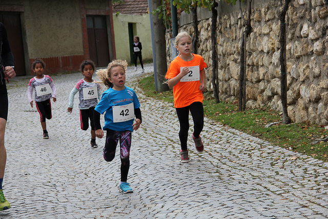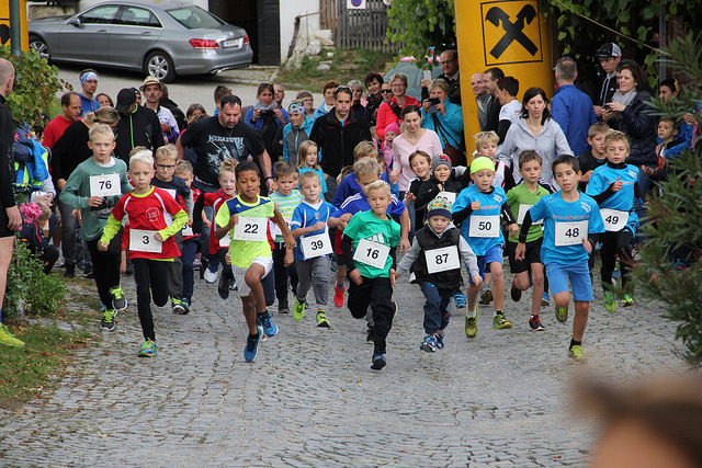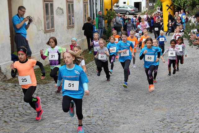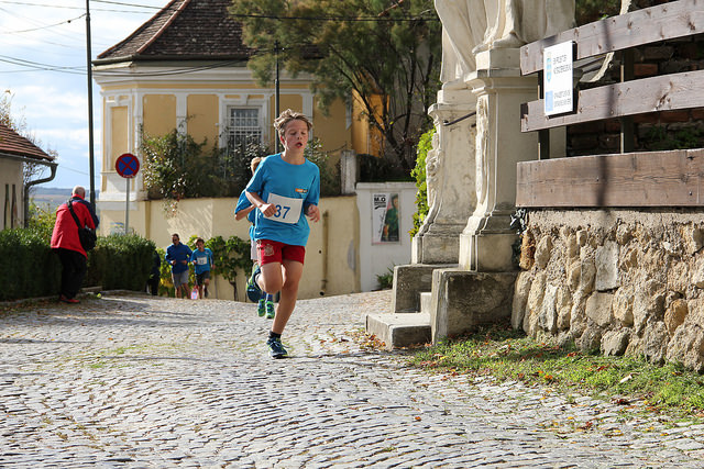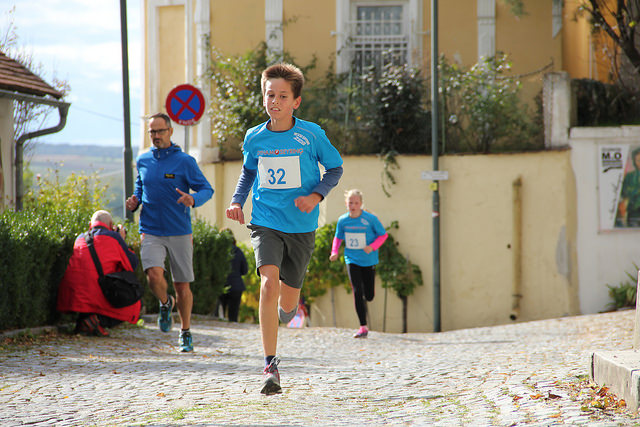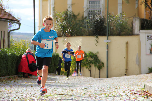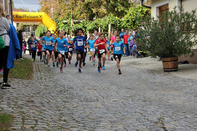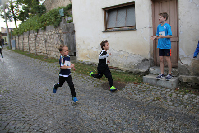 Poysdorfer Winzerlauf 2017 Christian Huf, Oktober 7, 2017 In der Gstettn !!! Ein interessanter Name für die Lokalität eines Kinderlaufes. So war es, das an diesem Tag 23 Kids nach Poysdorf reisten um das eigens für dieses Laufevent trainierte Wissen anzuwenden. Unser Trainerteam nutzte nämlich die letzte Donnerstagseinheit um unsere Dynamos auf diese spezielle Strecke vorzubereiten. Kopfsteinpflaster, enger Startbereich, kurvige und bergauf/-ab Passagen wurden geboten, um nur einiges zu nennen. Vor Beginn der Kinderläufe beschäftigten sich einige unserer Athleten/-innen noch mit einer Traubenzucker-Wurfmaschine. Ein Stück Traubenzucker wurde im Falle eines Treffers auf eine Zielscheibe mit einem Tennisball in die Luft geschleudert. Nach dem Auffangen durfte jeder den Traubenzucker sein Eigen nennen und ihn sofort verspeisen. Zielsicher, wie unsere Kids sind, kam so einiges zusammen. Dadurch etwas aufgepuscht, erklärt sich eventuell der sich später eingestellte Erfolg. Der Knirpselauf wurde professionellerweise in Mädchen und Burschen getrennt. Somit war ein reibungsloser Start jeweils möglich. Celine startete in der U10 sehr rasant und blieb an der ersten Läuferin lange dran. Es reichte zwar nicht ganz für den vordersten Platz, aber Sie konnte abermals, wie schon einige Rennen zuvor, einen Podestplatz herausholen. Sie wurde Dritte, einen Platz vor Ihrer Freundin Vicky, die dieses Mal den 4. Platz belegte. Geschlagen nur von der sehr starken Konkurrenz aus Tscheichien. Auch wenn es dieses Mal nicht ganz gereicht hat, darf Sie sich doch am Ende der Saison wahrscheinlich auf einen Stockerlplatz in der Gesamtwertung freuen. Katharina gelang dieses Mal der 6. Platz. Was uns aber viel mehr bewegt über Sie zu erzählen, ist die Tatsache, dass Sie als Einzige der Knisrpse bisher alle Läufe bestritten hat. Auch wenn es nicht immer zu einem Podestplatz reichte, zollen wir Ihr diesbezüglich Ihres Einsatzes höchsten Respekt. Emilia hatte dieses Mal in der U6 weit mehr zu kämpfen als wir es normalerweise zu sehen bekommen. Die Konkurrenz kam aus dem eigenen Lager, wenn auch nur als Kurzzeitgäste genannt, blieben die beiden Zwillingsschwestern Solea und Aurilia knapp dahinter. Mit diesem nächsten ersten Platz ist Emilia der Gesamtsieg im WLC eigentlich nicht mehr zu nehmen. Bei den männlichen Kollegen ist nun Akos endgültig zu seiner Form zurückgekehrt. Von Anfang an ließ er nichts Anbrennen und lief einem Start-Zielsieg sicher entgegen. Somit ist er nun definitiv Anwärter auf den 1. Platz in der Gesamtwertung in der U10. Bitte noch auf den letzten Lauf konzentrieren und Du wirst die Lorbeeren ernten. In der gleichen Wertung wurde Felix Dritter, nur noch ganz knapp hinter einem Langzeitkonkurrenten. Dominik belegte leider abermals den etwas undankbaren 4. Platz. Für Dominik gilt ähnliches wie für Katharina. Bis auf einen einzigen Lauf bestritt er bisher alle, rechnet man noch den einen oder anderen Hobbylauf dazu, so ist die Leistung sehr hoch anzusetzen. Weiter so, denn da Du in der U10 im nächsten Jahr bleiben wirst, stehen Dir noch alle Möglichkeiten offen. Zum 2. Mal durften wir Jonas begrüßen. Als einziger unserer Teilnehmer in der U8 erreichte er, auf den letzten 100m von seinem Papa unterstützt, den 12. Platz. Damit hat er sein Resultat im Gegensatz zu Gerasdorf immens verbessert. Bei Jonas erkennt man den Spaß, den er während des Laufes hat, und dies ist die beste Voraussetzung um gute Leistungen zu bringen. Weiter so! Im Schülerlauf hatte sich Moritz fest vorgenommen, voll anzugreifen. Er sah die Chance dieses Rennen für sich entscheiden zu können. Gesagt, getan! Von Anfang an ging er ein enorm hohes Tempo, dieses spätetens nach der Wende des 1,8 km Laufes niemand mehr mitgehen konnte. Er biß auch noch auf dem letzten Anstieg durch und konnte somit heuer erstmalig die U14 Wertung gewinnen. Gewohnt stark waren unsere Burschen in der U12 Wertung. Die Reihenfolge ähnelte sich der der letzten Läufe. Valentin erreichte abermals das Ziel vor Bernhard. Damit haben die beiden die obersten Podestplätze in der Gesamtwertung stark gefestigt. Eine hervorragande Leistung über das gesamte Jahr gesehen. Ein sehr enges Rennen gab es dieses Mal um den 3. Platz. In der Rangliste zeitmäßig beide gleich angeführt, entschied der Veranstalter den 3. Podestplatz an Felix zu vergeben. Wir vergönnen es Dir sehr und freuen uns riesig, hattest Du doch mit Deiner Verletzung vor den Sommermonaten lange zu kämpfen. Schön das Du wieder der „Alte“ bist. Natürlich hat es hier auch einen Leidtragenden gegeben. Den 4. Platz, eben ganz knapp daher verfehlt, erlief Andi. Zuerst natürlich etwas enttäuscht nahm er es aber danach tapfer zur Kenntnis. Wenn alles gut geht, wirst Du dafür nächste Woche den 3. Platz in der Gesamtwertung erreichen, der Dich dann doch etwas trösten sollte. Außerdem steht Dir nächstes Jahr die U12 noch einmal bevor! Den 5-fach Erfolg komplettierte Mate. Wir denken das Ihm das vormittägliche Fussballmatch doch etwas Substanz gekostet hat :-). Daniel wurde auf dieser anspruchsvollen Strecke Achter, nur ganz knapp hinter Benjamin, dieser seinen zweiten Lauf bestritt. Auch für Daniel sollte es nächstes Jahr etwas einfacher werden, da seine goldenen Zeiten anbrechen. Somit hatten wir !!! 7 !!! Dynamos unter den ersten acht. Beeindruckend! Zum allerersten Mal durften wir auch Stefan begrüßen. Bei dieser internen starken Konkurrenz ist es natürlich schwierig weit vorne zu sein. Trotzdem hielt er die lange Strecke souverän durch und erreichte den 12. Platz. Unsere Mädls standen der Leistung der Burschen um nichts nach. Tatjana feierte Ihren bereits neunten 1. Platz. Julia kam als Zweite ins Ziel. Dieses Mal aber leider nicht vor Ihrer Schwester Tamara. Scheinbar etwas gekennzeichnet von einer Verkühlung, mußte Sie sich mit dem 4. Platz begnügen. Getröstet kann sie aber mit der Tatsache werden, das Ihr der 3. Platz in der Gesamtwertung nicht