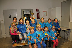 Schlussveranstaltung WVLC 2014 admin, Oktober 19, 2014 Ein Jahr der Rekorde liegt hinter uns. Ganze 34 Kids sind beim Weinviertelcup für den Dynamo Seyring an den Start gegangen.Knappe 300 Starts wurden absolviert, über 200 km erlaufen. Bei den Knirpsen ist die Hälfte, der ersten 30 in der Gesamtliste, Dynamos. Bei den Schülern haben sich unsere 5 Dynamos gut geschlagen. Auch hier konnte ein Stockerlplatz erlaufen werden, welcher hart erkämpft war! Unser U6 Trio: Felix, Alex und David sorgten für ein dynamisches Stockerl gleich zu Anfang der Ehrungen der Kids.Danae konnte in einem Herzschlagfinale den Ersten Platz in der WU8 zurück erobern.Andreas hat sich in einer starken Saison den ersten Platz in der MU8 gesichert.Timo und Moritz haben sich den zweiten und dritten Platz in der Klasse MU10 erkämpft.Kerstin hat sich den dritten Platz bei den WU12 erlaufen. Knapp an den Stockerlplätzen vorbei, an der vierten Stelle waren Tatjana, mit nur 10 Punkten Rückstand, und Bernhard, beide in der Klasse U10. Beide sind die „jungen“ in ihrer Klasse und werden hoffentlich nächstes Jahr voll zuschlagen. Noah und Julian fehlten leider ein paar Läufe auf eine volle Wertung, mit der sie wahrscheinlich unter den ersten drei ihrer Klasse gelandet wären. Hier das Ergebnis aller Dynamos: Rg Name Verein Gesamt 3 Kern Timo Dynamo Seyring MU10 2 778,34 5 Gamsjäger Moritz Dynamo Seyring MU10 3 767,96 7 Huf Tatjana Dynamo Seyring WU10 4 749,74 8 Oberleitner Tina Dynamo Seyring WU10 5 718,88 9 Braunsdorfer Bernhard Dynamo Seyring MU10 4 709,19 10 Gamsjäger Andreas Dynamo Seyring MU8 1 696 11 Wenko Melanie Dynamo Seyring wU10 6 687,75 12 Himmel Daphne Dynamo Seyring WU10 7 654,75 13 Ostryzova Nikola Dynamo Seyring WU10 8 650,41 17 Himmel Danae Dynamo Seyring WU8 1 629,71 25 Preisl Felix Dynamo Seyring MU6 1 529,76 26 Wenko Alexander Dynamo Seyring MU6 2 519,67 29 Mandl Lisa Dynamo Seyring WU10 10 460,28 30 Braunsdorfer David Dynamo Seyring MU6 3 447,23 32 Neumayr Ferdinand Dynamo Seyring MU10 8 439 37 Axmann Noah Dynamo Seyring MU8 4 398,44 39 Eder Benjamin Dynamo Seyring MU10 11 381,99 41 Friedlmayer Felix Dynamo Seyring MU10 13 343,73 48 Szewald Lilly Dynamo Seyring WU10 12 203,54 54 Cupriak Christopher Dynamo Seyring MU10 17 164 58 Povysil Mirabell Dynamo Seyring wU10 13 142,13 113 Harangi Akos Dynamo Seyring mU6 10 79,7 157 Friedlmayer Alessandro Dynamo Seyring MU10 39 73,55 271 Mandl Lena Dynamo Seyring WU8 51 57,04 321 Mandl Max Dynamo Seyring MU6 44 38,51 53 Harangi Máté Dynamo Seyring MU10 16 165,06 113 Harangi Ákos Dynamo Seyring mU6 10 79,7 Schüler: 6 Preisl Kerstin Dynamo Seyring WU12 3 703,1 13 Trinkl Julia Dynamo Seyring WU12 5 637,2 20 Braunsdorfer Nina Dynamo Seyring WU12 6 534,5 26 Kapp Julian Dynamo Seyring MU12 6 395,4 88 Oberladstätter Lenard Dynamo Seyring MU12 18 80,14 96 Pastucha Christina Dynamo Seyring WU12 22 78,92 Alle Ergebnisse findet ihr hier und hier Fotos der Veranstaltung News