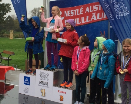 Rückblick: Nestlé Austria Schulläufe – Tatjana siegt 2 Mal! Udo Lakovits, November 22, 2014 Zu unserer großen Freude nehmen unsere dynamischen Kids immer wieder ausserhalb der „regulären“ Läufe des Dynamo Seyring an Laufveranstaltungen teil – und das auch äusserst erfolgreich! In diesem Fall war es Tatjana, die am 9. Oktober in Schwechat und am 17. Oktober als „Legionärin“ in Wien gleich an 2 Schulläufen teilnahm. Während sie den Lauf in Niederösterreich in souveräner Manier für sich entscheiden und überlegen den 1. Platz erringen konnte, kam es in Wien beim Zieleinlauf zu einem Photofinish. Obwohl sie bei der Zwischenzeit noch um über 14 Sekunden zurück lag, gab sie nie auf und konnte dank einer atemberaubenden Aufholjagd das Rennen sogar noch gewinnen – mit einem Vorsprung von 2 Zehntel Sekunden! Wir freuen uns, dass Tatjana bei beiden Läufen so großartige Leistungen erbracht und ganz nebenbei auch noch die Farben des Dynamo Seyring hochgehalten hat. Herzliche Gratulation, Tatjana! News